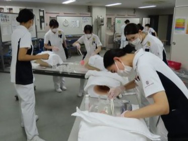 シミュレーターを用いて演習を行うので、感染や安全の面だけでなく患者さんへの声掛けや羞恥心への配慮も学ぶ機会になりました。