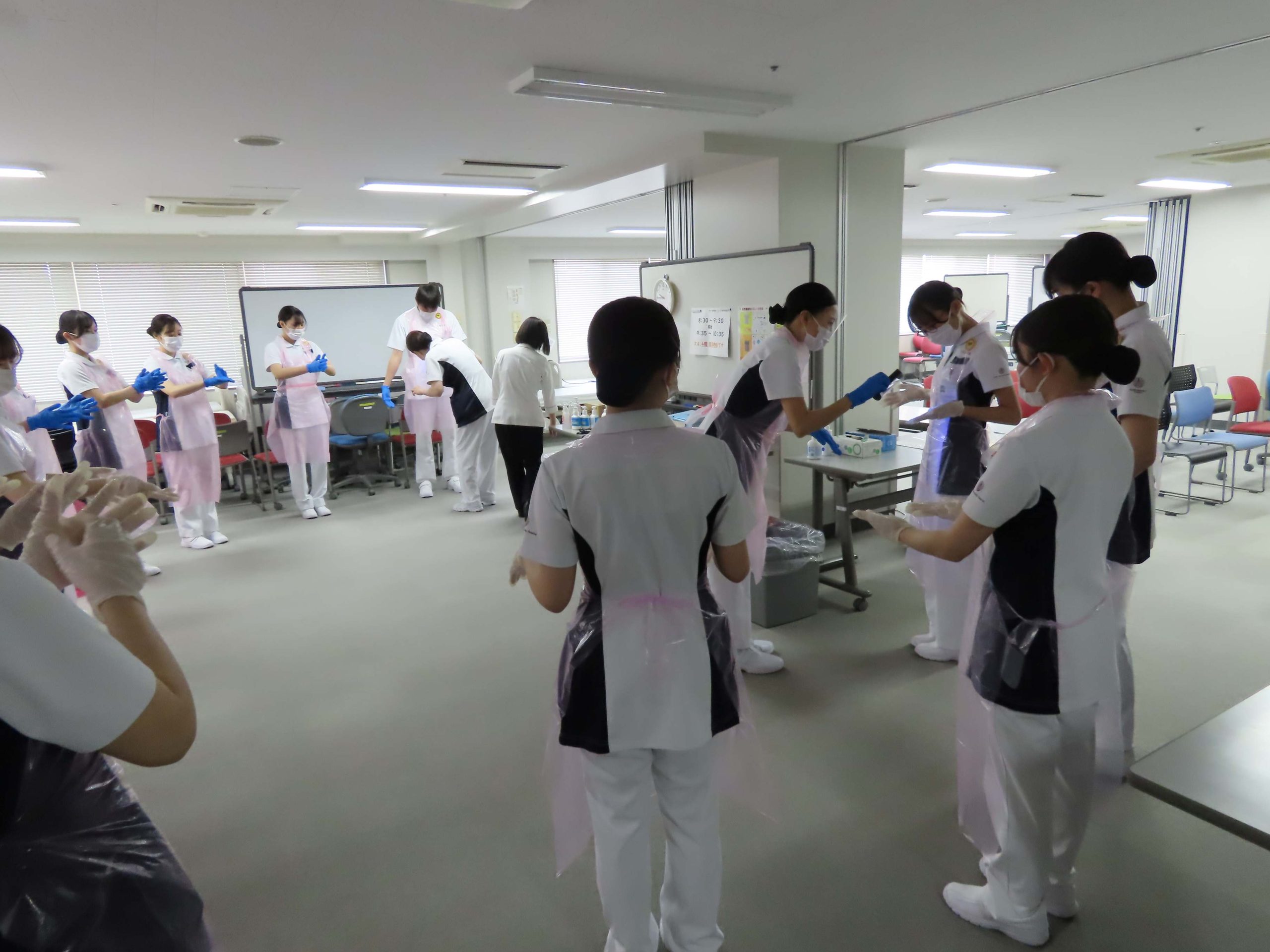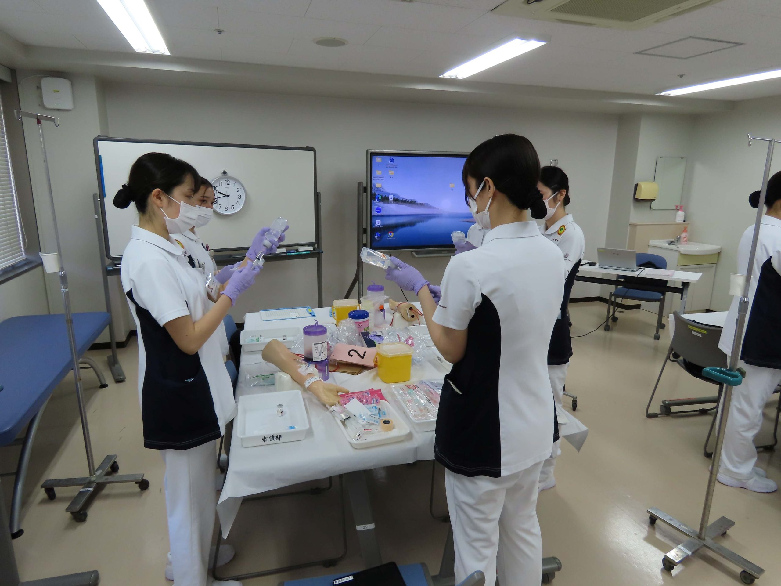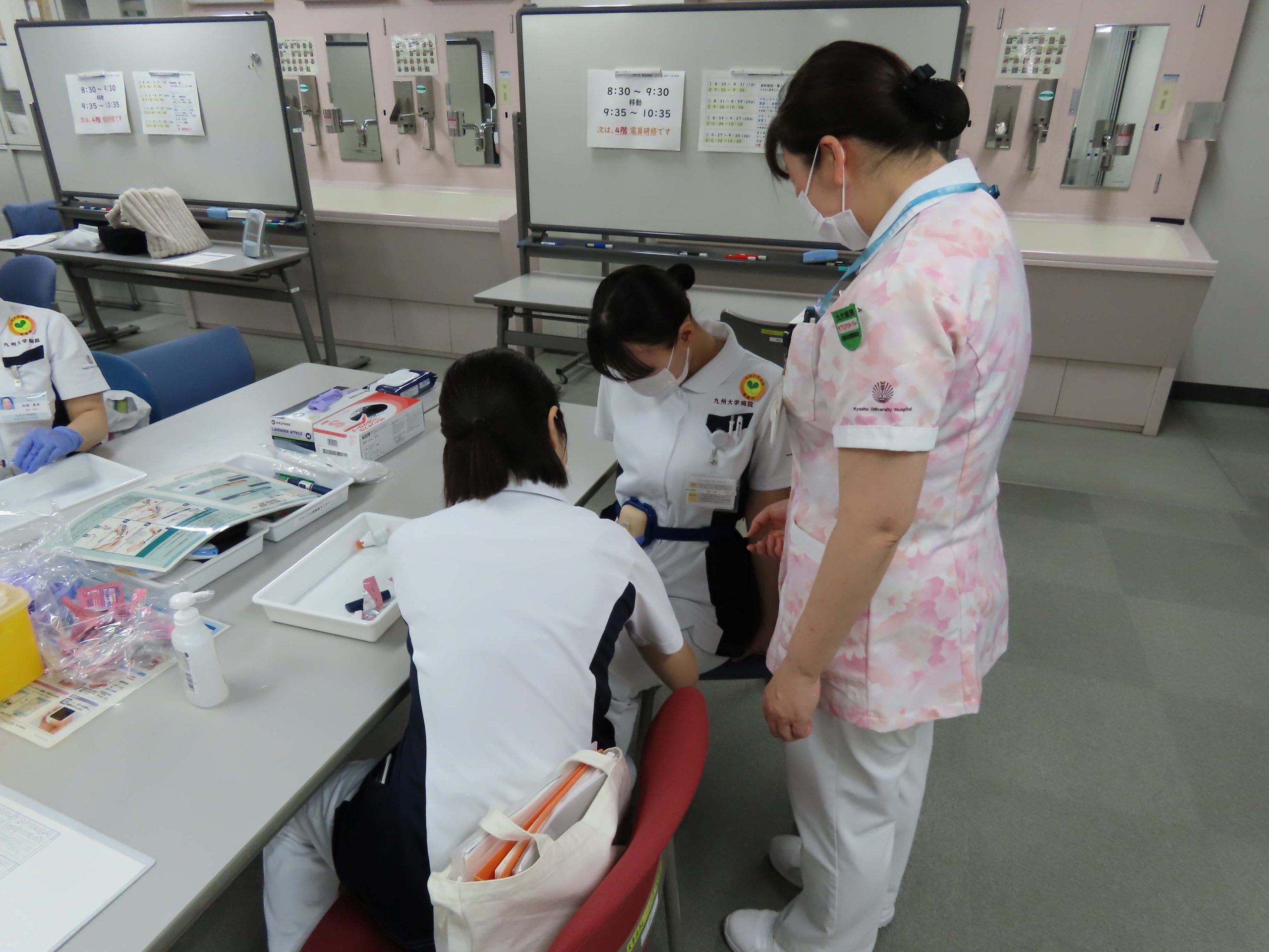 演習は、感染管理1、2(手指衛生・PPE・針刺し防止(血糖測定・インスリン注射))、